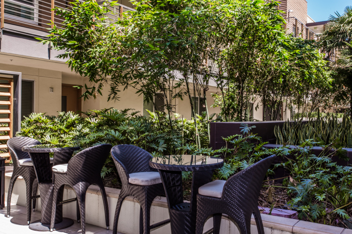 Contemporary & warm are not mutually exclusive in this stunning single-level 2 bedroom plus den end unit in popular Primera Terra, a LEED Platinum certified building. With three stories instead of the typical four, Primera Terra offers more space between floors for noise reduction & units have approximately 10 foot high ceilings. This gorgeous home features hardwood floors in the living areas & bedrooms, open kitchen with granite countertops, stainless steel Whirlpool appliances, & large island with adjacent dining space, perfect for family meals or entertaining. Living room & adjacent large patio provides comfort & ample outdoor space. Master bedroom has walk-in closet & bathroom has quartz countertops and double-sinks. 2nd bedroom and full bath, den that could be enclosed, and 2 car side by side parking complete the package. Attractive BBQ/picnic area & community garden steps from your door. Very short distance to new gym, movie theater, Whole Foods, CVS, & great restaurants.