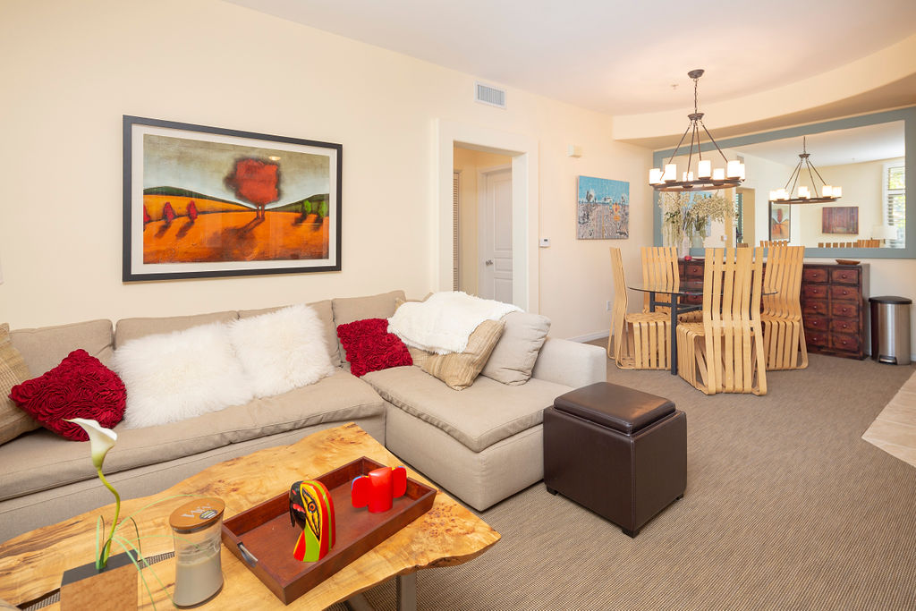 Sweet 2 bedroom, 2 bath top floor unit in Carabela. Bright, open plan features spacious living area, high ceilings with extra tall windows, and large balcony with city, mountain and sunset views. Spacious kitchen has stainless steel appliances, granite countertops, and tons of storage. Enjoy meals in the dining area …