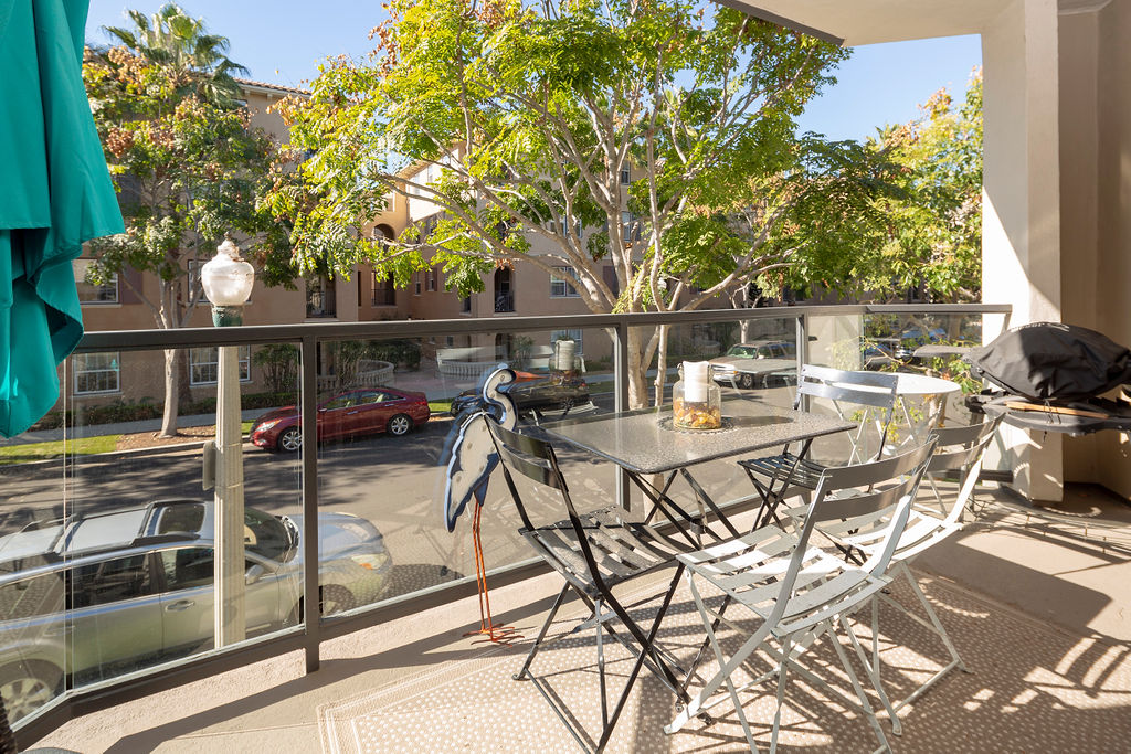 Awesome value meets attractive and smart living spaces in this stylish, single-level 2 bedroom condo in Promenade. Enter to a bright, West-facing great room with nearly a full wall of windows. To the left are newer built-ins with TV area and on the right is another living area with adjacent dining area. Watch TV or chat with your guests from open kitchen featuring a breakfast bar, granite countertops, mosaic backsplash, stainless steel appliances & Travertine tile floors. Large balcony, perfect for lounging or al fresco dining, spans nearly the width of the entire unit. Two bedrooms & bathrooms on opposite ends is great for privacy. Both bathrooms have double sinks and both bedrooms have walk-in closets. Quiet and convenient location within the Playa Vista community. Just a block from Concert Park and shops and short distance from numerous other parks, The Resort, Centerpointe Club, PV Elementary School, community library, Runway shopping area, Whole Foods, and Cinemark movie theater.