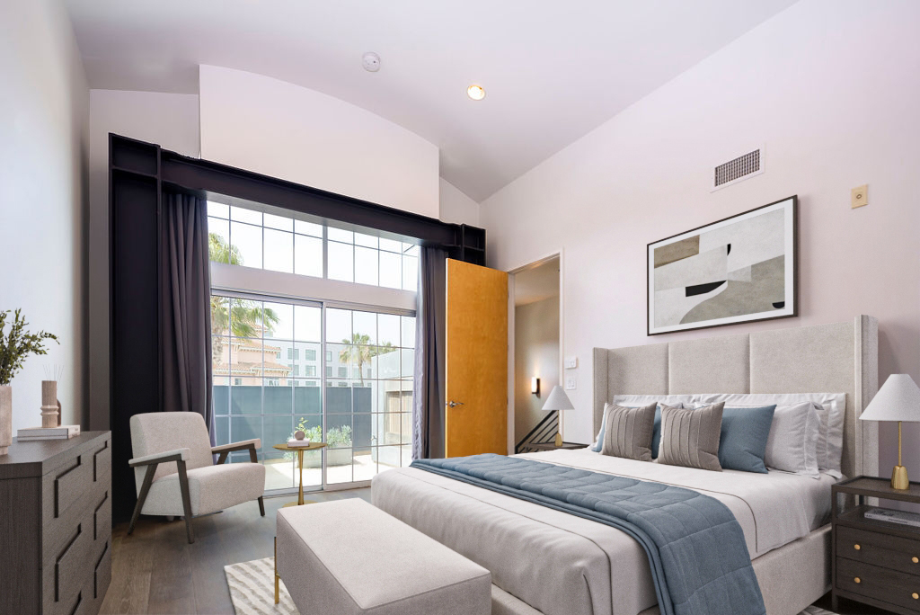 Beautifully-updated and elegant townhome in the sought-after Bridgeway Mills community. Step into a bright, open-concept living space with soaring ceilings, where industrial elements like exposed beams and ductwork are balanced by warm wood flooring and transitional styling throughout the home. Enter directly from your private over-sized 3-car garage, or walk up from the street past your large private front patio for a true urban feel. The main level offers a spacious great room with a generous living area, and a dedicated dining space with front and rear facing windows for great natural light. The completely renovated kitchen features new cabinetry, sleek quartz countertops and backsplash, and top-of-the-line Viking appliances, perfect for both everyday living and entertaining. Upstairs, two good-sized bedrooms, the front one with a private balcony, share an updated bathroom with quartz countertops and stylish tilework. The top-level primary suite is a private retreat with a large deck and fireplace, a luxurious bath with dual sinks, a separate shower, and a spacious walk-in closet. Enjoy all the lifestyle perks Playa Vista has to offer, including two fitness centers, swimming pools, multiple parks and playgrounds, Whole Foods, Cinemark Theater, popular restaurants, boutique shopping, fitness studios, and easy access to LMU, Silicon Beach’s leading employers, LAX, and the beach.