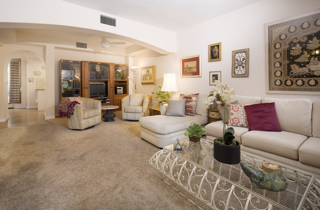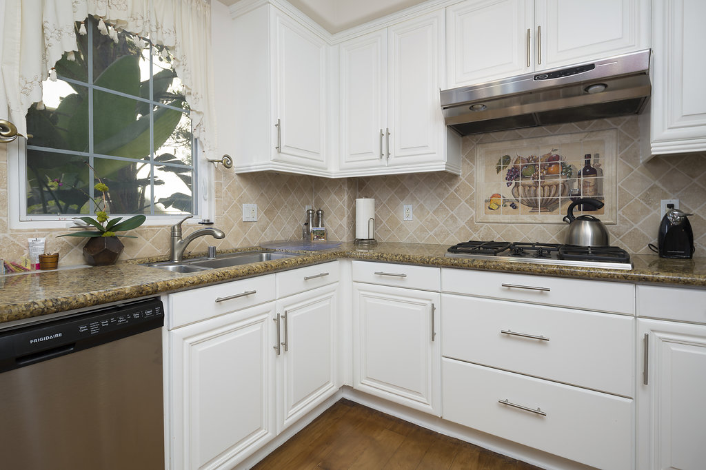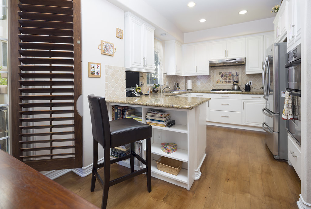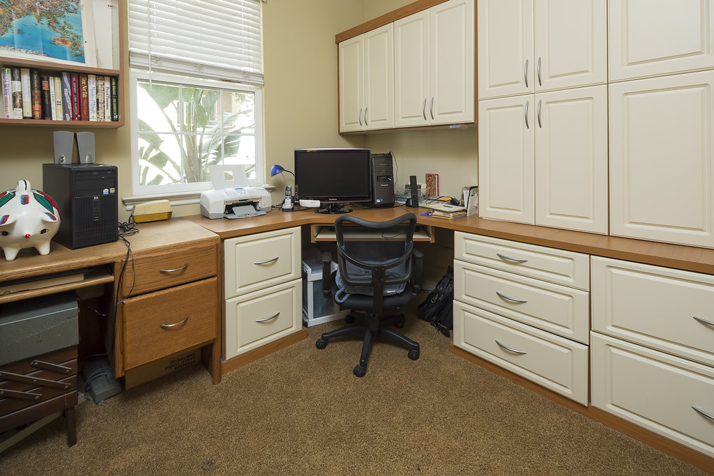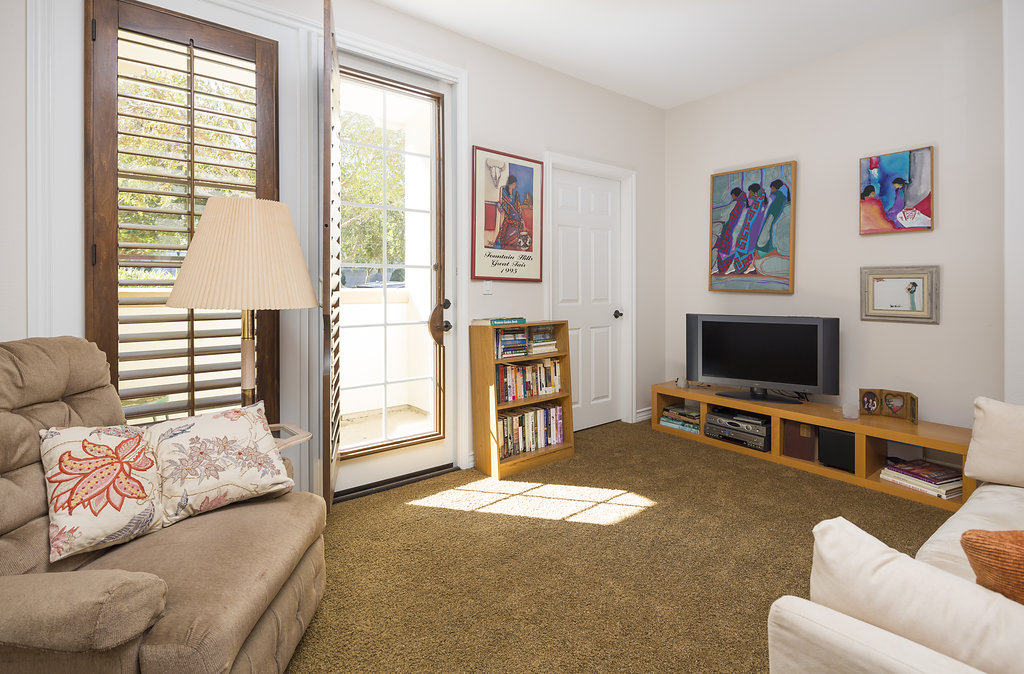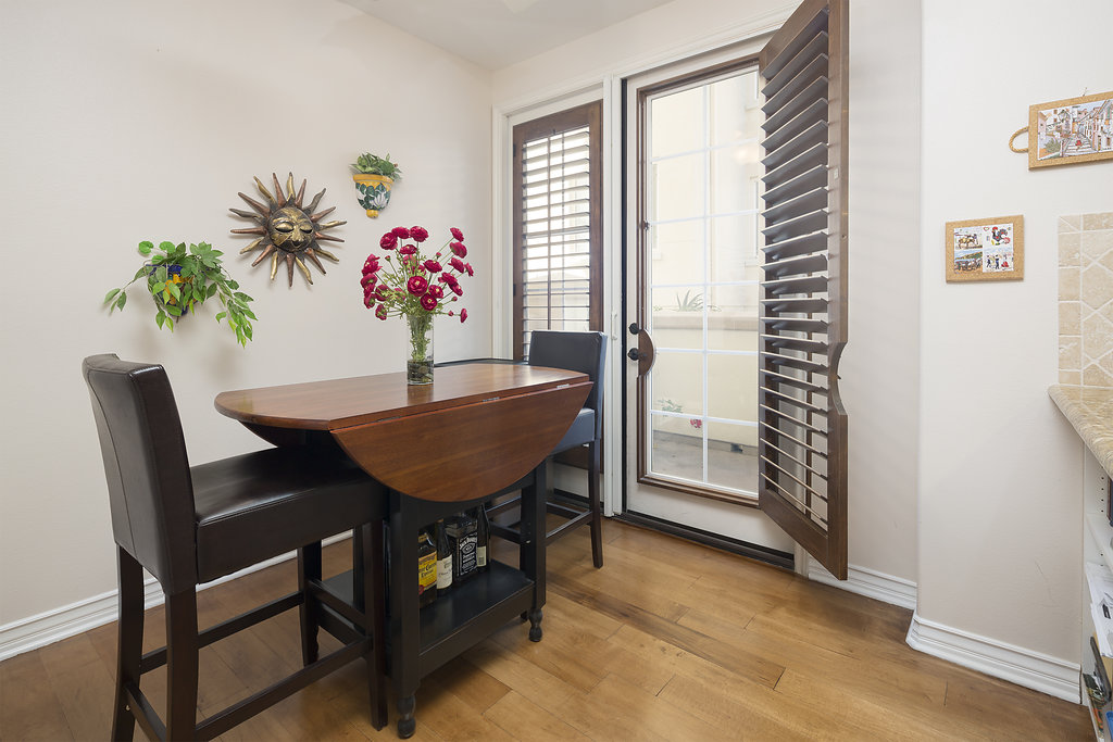 Rare floor plan in the elegant & intimate 39 unit Villa d’Este. Entry opens to large living room with fireplace and sunny, South-facing private patio overlooking the beautiful courtyard. Continue to kitchen featuring hardwood floors, white cabinets, granite countertops, breakfast nook, pantry, and another patio. Down the hall are an additional dining area and downstairs park-facing bedroom with third patio and full bathroom. Upstairs hallway features hardwood floors that lead to three more bedrooms (one is legally an office with built-in desk and shelving), two more full baths, and laundry room. Spacious master retreat has Juliet balcony and features en-suite bathroom with dual sinks and walk-in closet. Ample storage throughout and additional private storage unit in garage. Villa d’Este is located across the street from the Centerpointe Club and is a very short distance to numerous parks, Playa Vista Elementary School, Cinemark movie theater, and many exciting restaurants and shops.