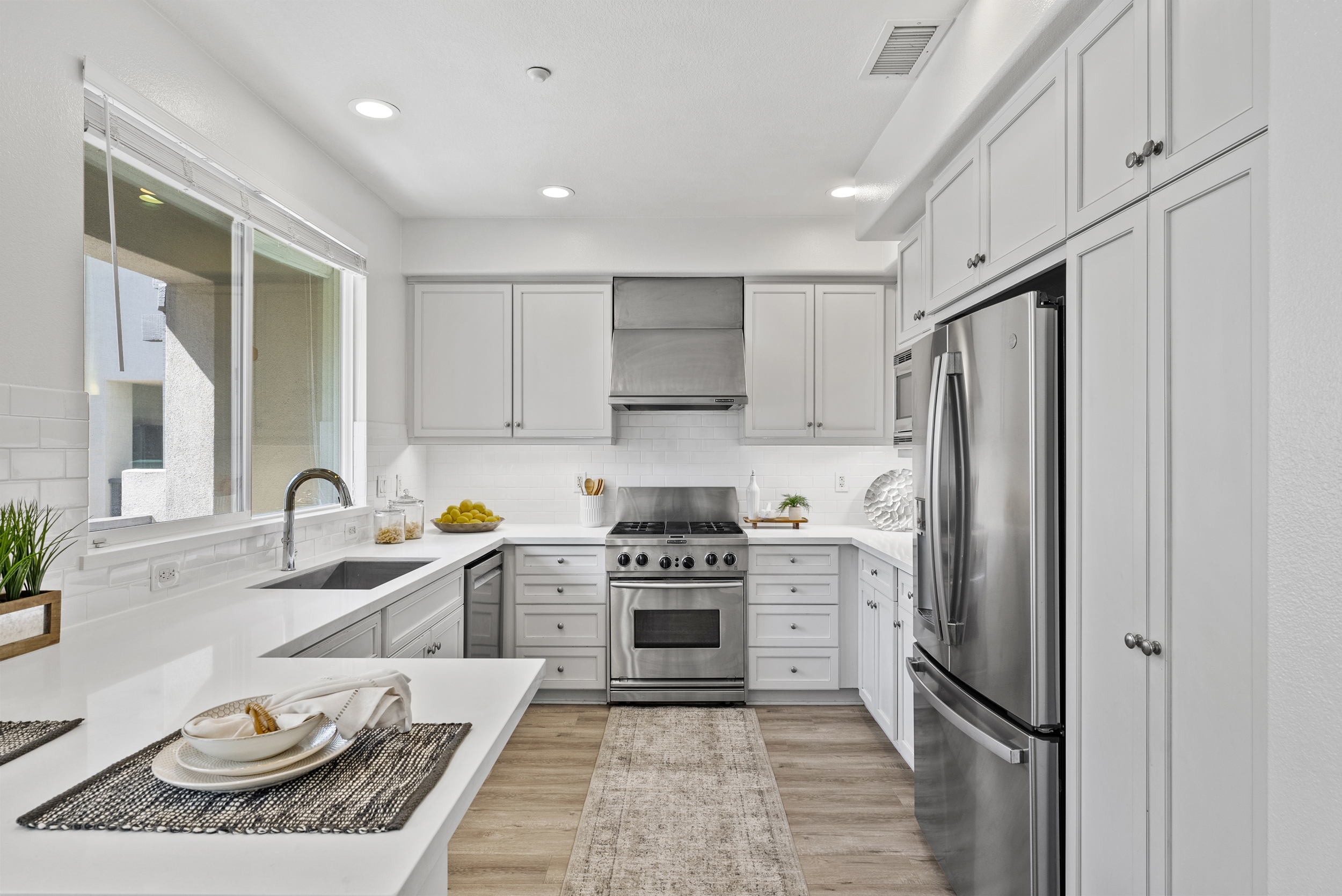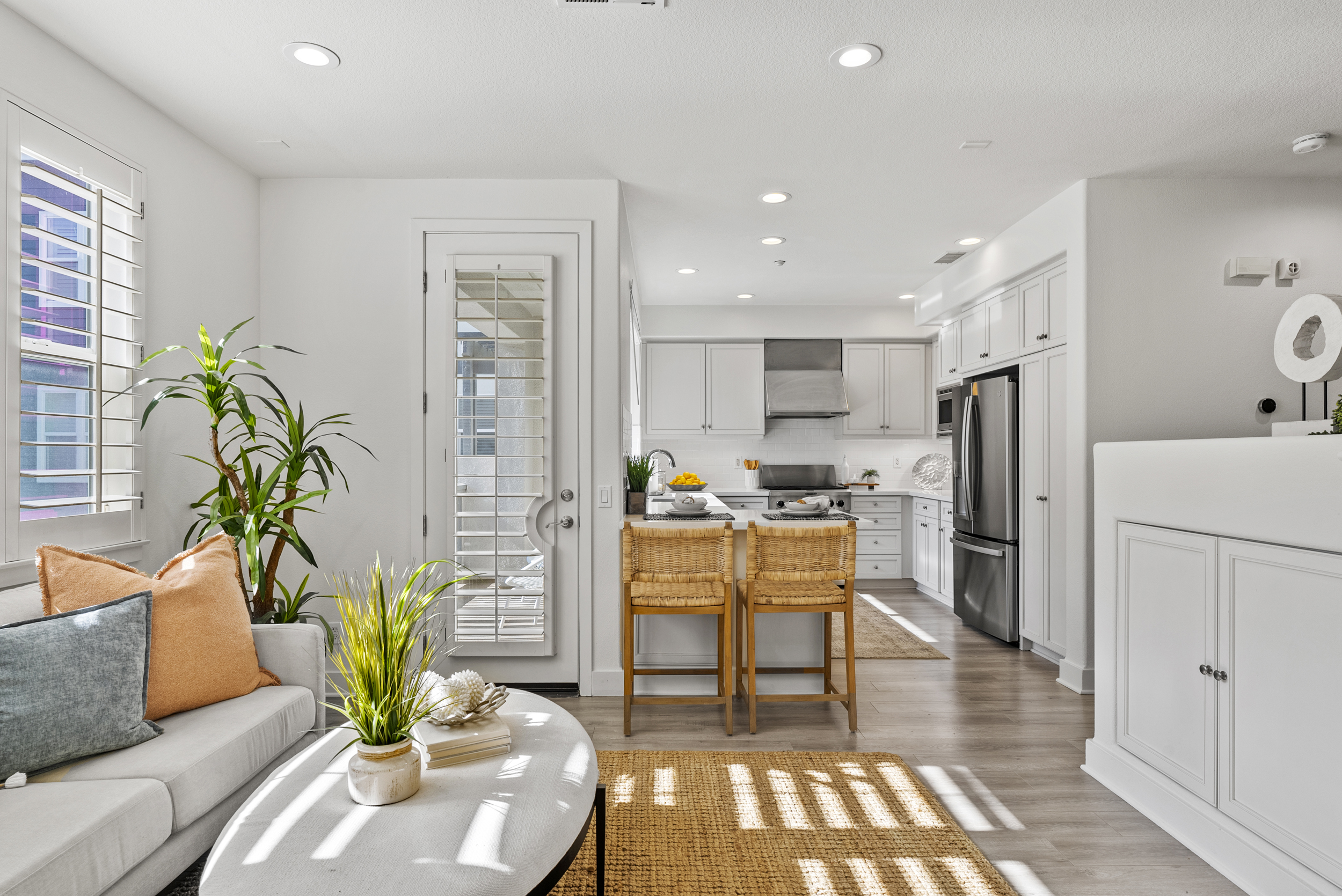Beautifully updated Tapestry II coveted Plan B townhome. Upon entering the front door, a sun-filled, double-height living room with tall windows sets the tone. Step up to a dedicated dining space and continue to the family room, which is perfect for entertaining or lounging with built-in entertainment equipment storage, gas fireplace with a large wall above for a TV, as well as adjacent balcony. Open to the family room, the refreshed kitchen features newer white cabinetry, quartz countertops, Kitchen Aid stainless appliances, and a large picture window overlooking the balcony. Powder room located on the main level as well. Upstairs are three bedrooms, all with high ceilings and large windows. The spacious primary suite has an updated bath with separate shower and soaking tub, plus walk-in closet, and the two additional bedrooms share a hall bath. Full laundry room off of the garage on the lower level. Private 2-car garage with direct-entry features a Tesla universal EV charger and large bonus room plus additional crawl space storage. Other recent updates include LVP flooring in the living areas, fresh paint, and new LED recessed lighting. HOA dues cover cable, internet, alarm monitoring, and earthquake insurance. Prime interior setting facing a quiet courtyard, one block to Concert Park and close to Runway and The Resort. Enjoy Playa Vista’s amazing lifestyle amenities including pools, fitness centers, parks, sports courts, playgrounds, and steps to shopping, entertainment, and dining.