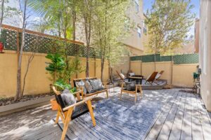 Welcome to this beautiful, tri-level detached home in the popular Matisse community. Home is situated at the end of a small court in quiet, low-traffic location of Playa Vista. Upon arriving, enter through front door or from your private two car garage. On the lower level, there is one bedroom suite with full bathroom and access to a spacious, private backyard with decking and mature trees. One level up is the main living area with hardwood floors and an open kitchen that is adjacent to the dining area. Enjoy breezes from faux balcony with sliding glass doors in dining area. Kitchen features large island, stainless steel appliances, including wine fridge, multiple windows, attractive wood cabinetry, and pantry with ample storage. Continue to the spacious step-down living room with high ceilings, fireplace, and front balcony overlooking courtyard. Half bath on this level as well. Hardwood floors continue on the upper level where there are two bedroom suites, both with full baths, and a laundry area. The bright and airy primary suite has a large bathroom with separate shower and tub, dual sinks, walk-in closet, faux balcony with sliders, as well as automatic window shades. Hunter Douglas window treatments and ceiling fans throughout. Only one and a half blocks to Concert Park shops and restaurants and very short distance to two gyms, swimming pools, multiple parks and playgrounds, Runway shopping area with Whole Foods, CVS, Cinemark movie theater, Saturday farmer’s market, and multiple restaurants. Come see the lifestyle that this home in the unique community of Playa Vista allows you to experience.