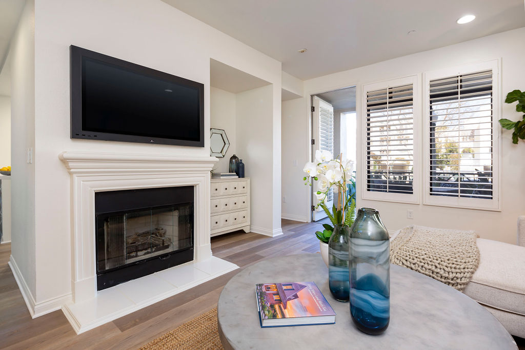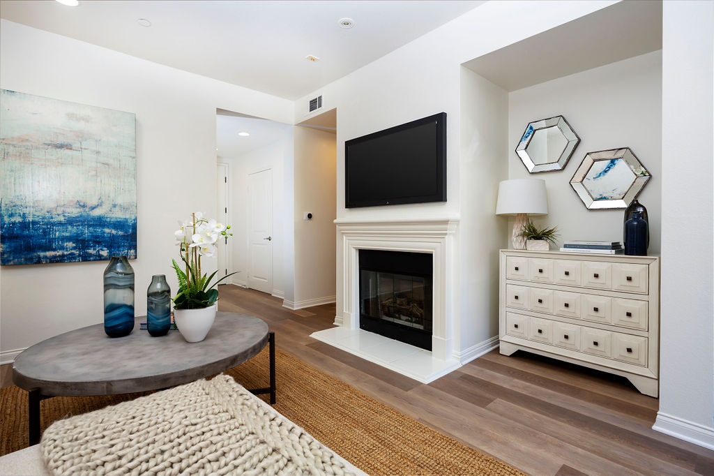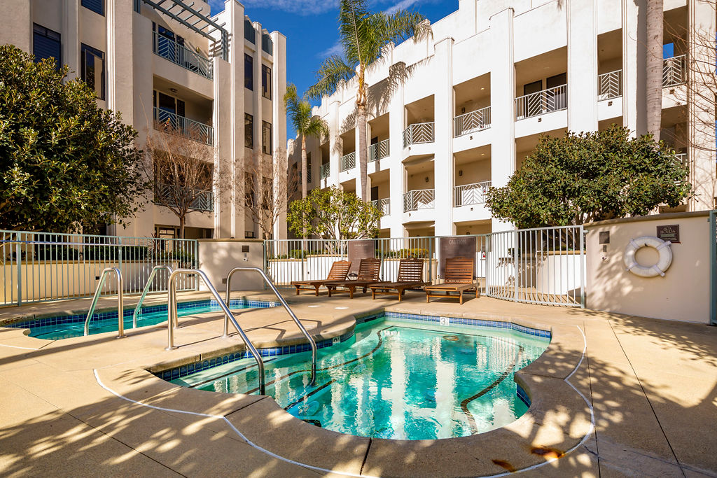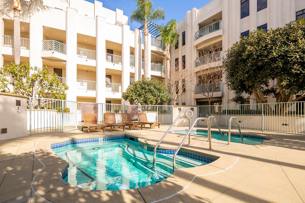 Updated 2 bedroom + office condo in The Metro. Park-facing unit located on the first two floors has new vinyl plank flooring and fresh paint throughout. Hang out with family and friends at the breakfast bar in your updated kitchen, featuring new quartz countertops and backsplash, while meals are prepared with your stainless steel appliances. Living room has cozy fireplace and connects to large patio surrounded by lush birds of paradise where you can lounge and enjoy the tranquil sounds of the fountain and pleasant sights of Crescent Park. Bring your laptop outside and work from home under your covered patio or from the adjacent office/den. Main level also features powder room and massive entry storage closet. Upstairs are two bedrooms suites as well as the laundry area. Spacious primary suite featuring large bathroom with double sinks, soaking tub, separate shower, and walk-in closet. Guest bedroom has en-suite bathroom and balcony with a beautiful park view. Take a dip in the relaxing hot tub or refreshing cold tub and nearby picnic area located just steps from the unit. Side by side secured parking and short distance to parks, gyms, pools, Whole Foods, Cinemark movie theater, multiple dining options, and all Playa Vista amenities.