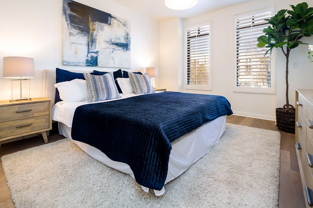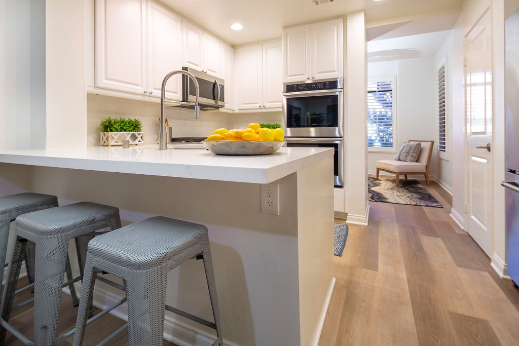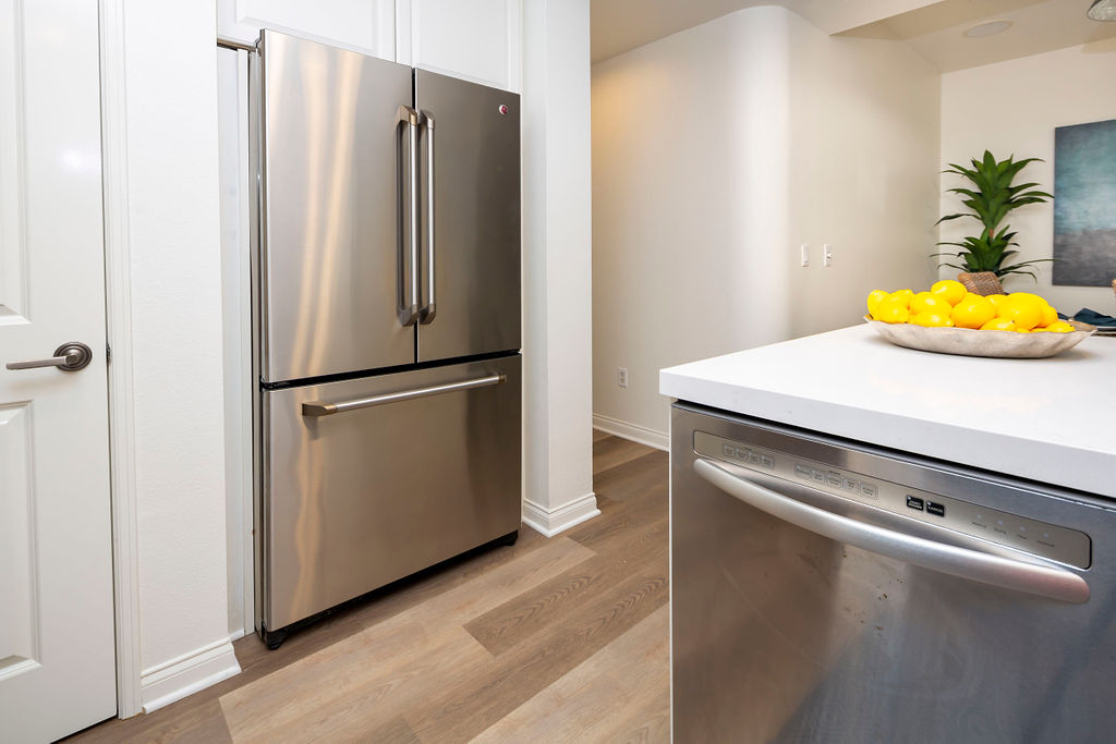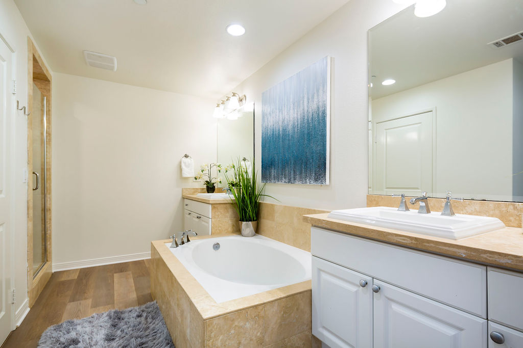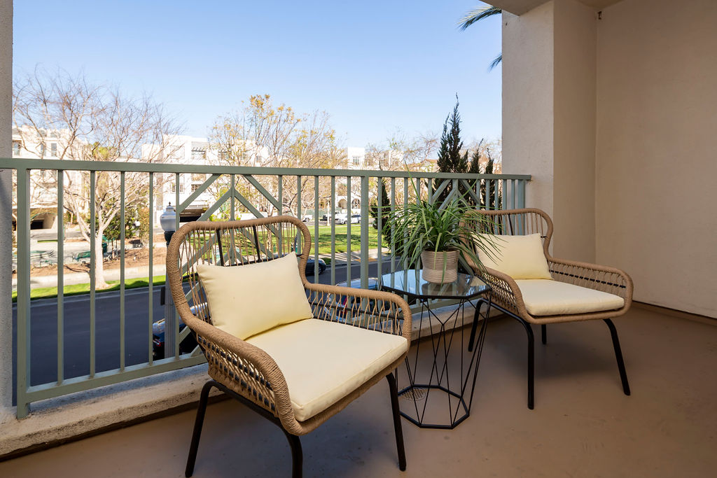 Updated 2 bedroom + office condo in The Metro. Park-facing unit located on the first two floors has new vinyl plank flooring and fresh paint throughout. Hang out with family and friends at the breakfast bar in your updated kitchen, featuring new quartz countertops and backsplash, while meals are prepared with your stainless steel appliances. Living room has cozy fireplace and connects to large patio surrounded by lush birds of paradise where you can lounge and enjoy the tranquil sounds of the fountain and pleasant sights of Crescent Park. Bring your laptop outside and work from home under your covered patio or from the adjacent office/den. Main level also features powder room and massive entry storage closet. Upstairs are two bedrooms suites as well as the laundry area. Spacious primary suite featuring large bathroom with double sinks, soaking tub, separate shower, and walk-in closet. Guest bedroom has en-suite bathroom and balcony with a beautiful park view. Take a dip in the relaxing hot tub or refreshing cold tub and nearby picnic area located just steps from the unit. Side by side secured parking and short distance to parks, gyms, pools, Whole Foods, Cinemark movie theater, multiple dining options, and all Playa Vista amenities.